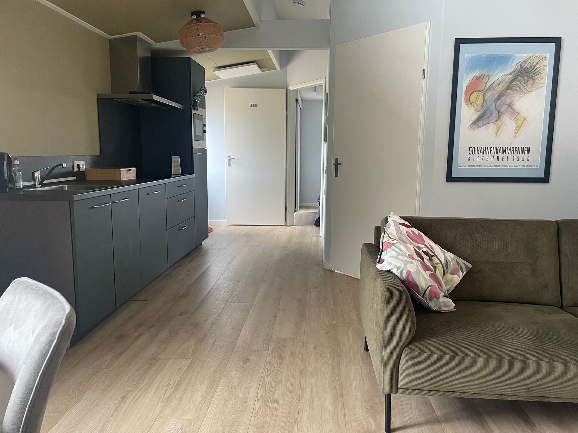 Ruim appartement van 50 m² met eigen ingang, terras en uitzicht over de velden en paarden. Voorzien van een complete keuken met vaatwasser en combimagnetron, gezellige woonkamer, aparte slaapkamer met boxspring en privébadkamer. Inclusief snelle glasvezel-wifi, tv met bekende zenders, horren voor alle ramen en geschikt voor mensen met een beperking. Fiets- en parkeergelegenheid direct naast het appartement.