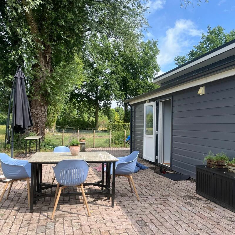Buiten kun je genieten op het grote terras, helemaal vrij en met uitzicht over de velden, weilanden en de paarden van de gastvrouw. Echt een plek midden in de natuur! Je fiets kun je gewoon naast het appartement kwijt, en parkeren kan op ons erf.